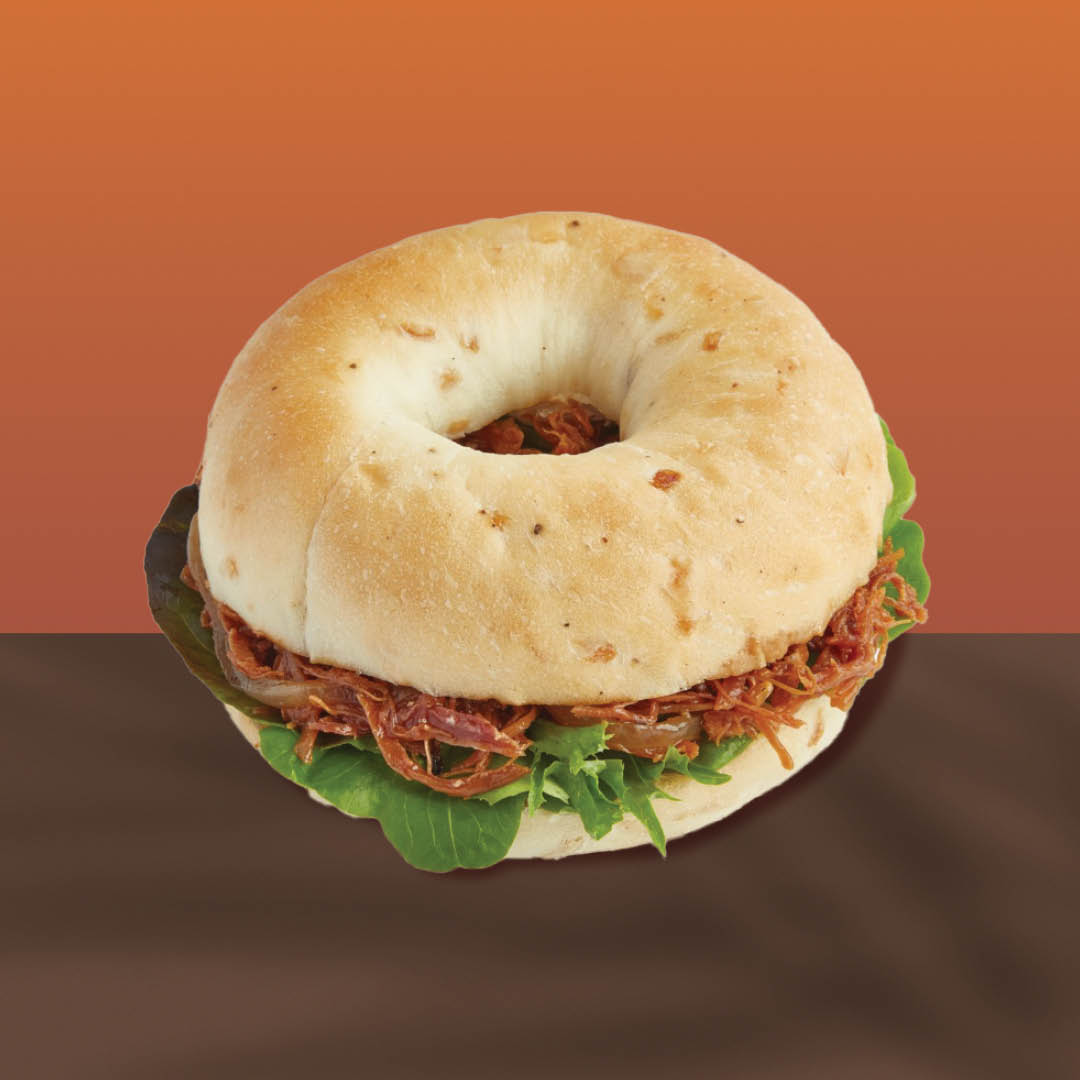豐盛的手撕豬配上香濃洋蔥貝果,滋味濃郁,令人一試難忘。