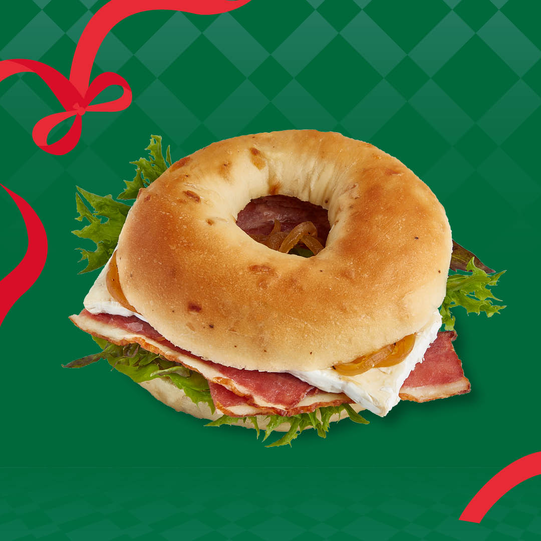 布利芝士煙肉焦糖洋蔥貝果三文治